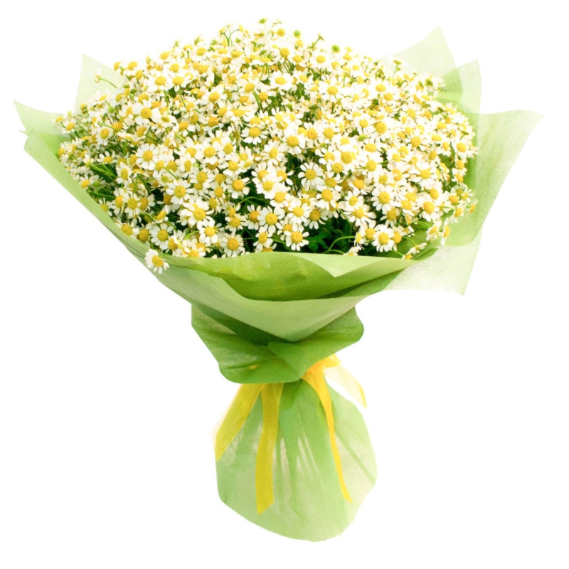 Букет состоит из 25 веток танацетума, красивая упаковка, атласная лента.